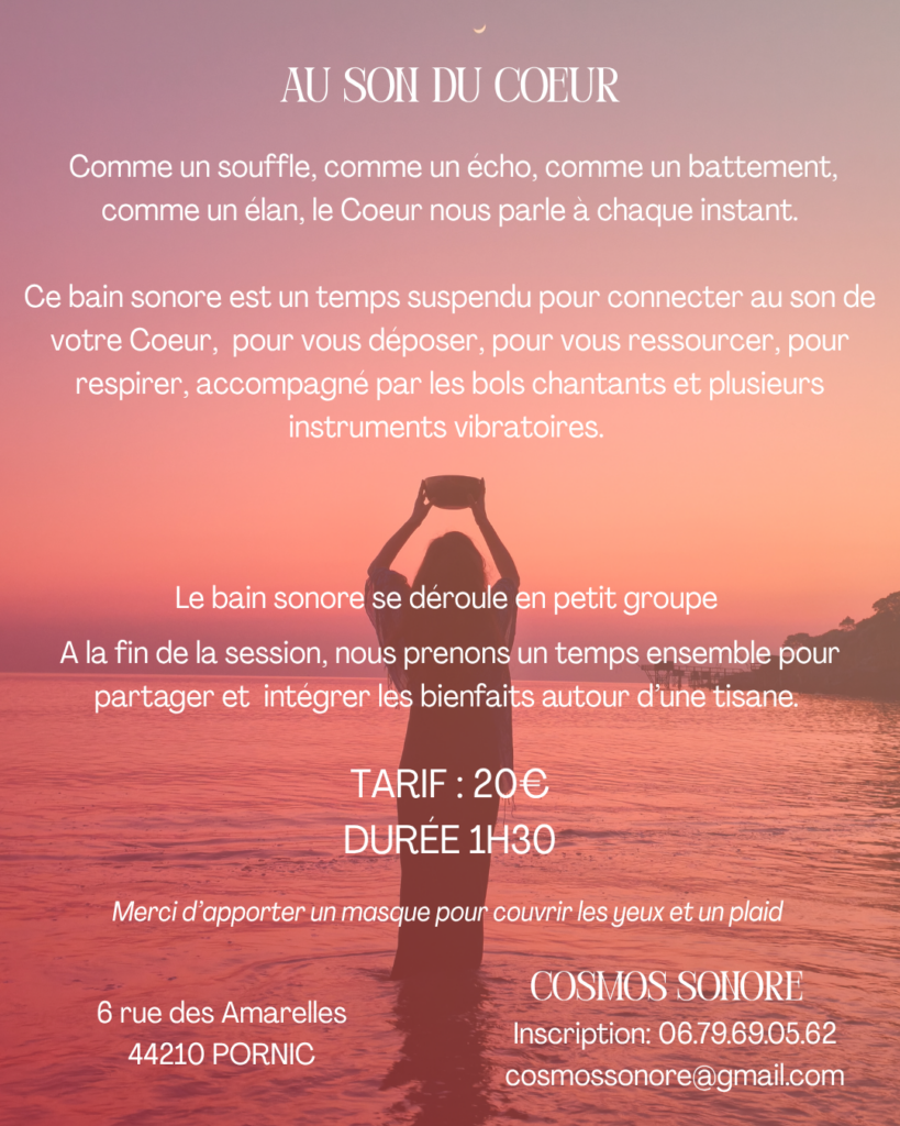 Soins et Massages Sonores : Plongez dans une expérience immersive grâce aux vibrations apaisantes des bols chantants et autres instruments. Ces sons thérapeutiques libèrent les blocages et procurent une sensation de paix et de légèreté.